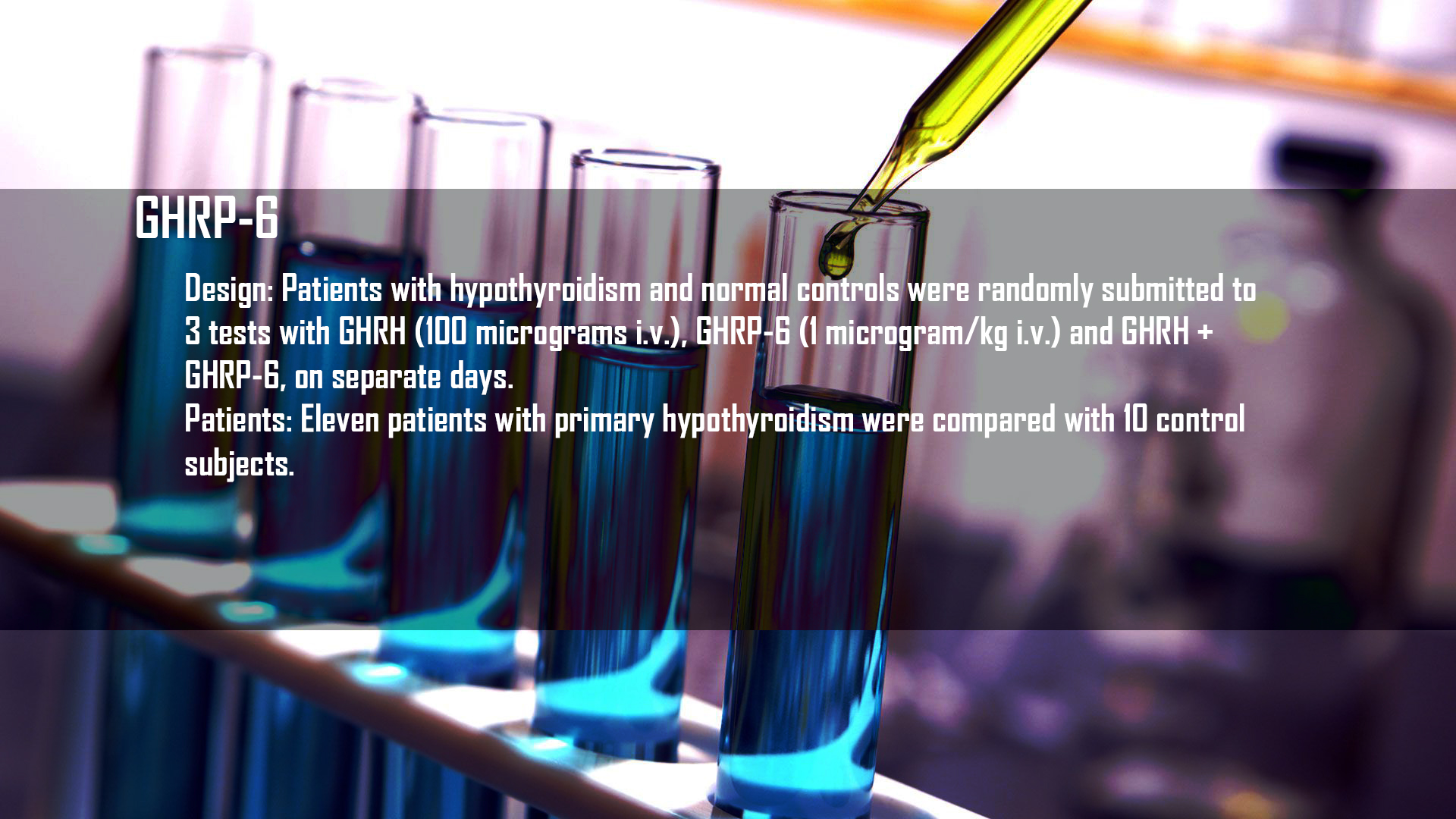 It has been discovered that when GHRP-6 and insulin are administered simultaneously, GH response to GHRP-6 is increased (1). However, the consumption of carbohydrates and/or dietary fats, around the administration window of GH secretagogues significantly blunts the GH release. A recent study in normal mice showed significant differences in body composition, muscle growth, glucose metabolism, memory and cardiac function in the mice being administered the GHRP-6 (2). There are still many questions regarding this fairly new compound.